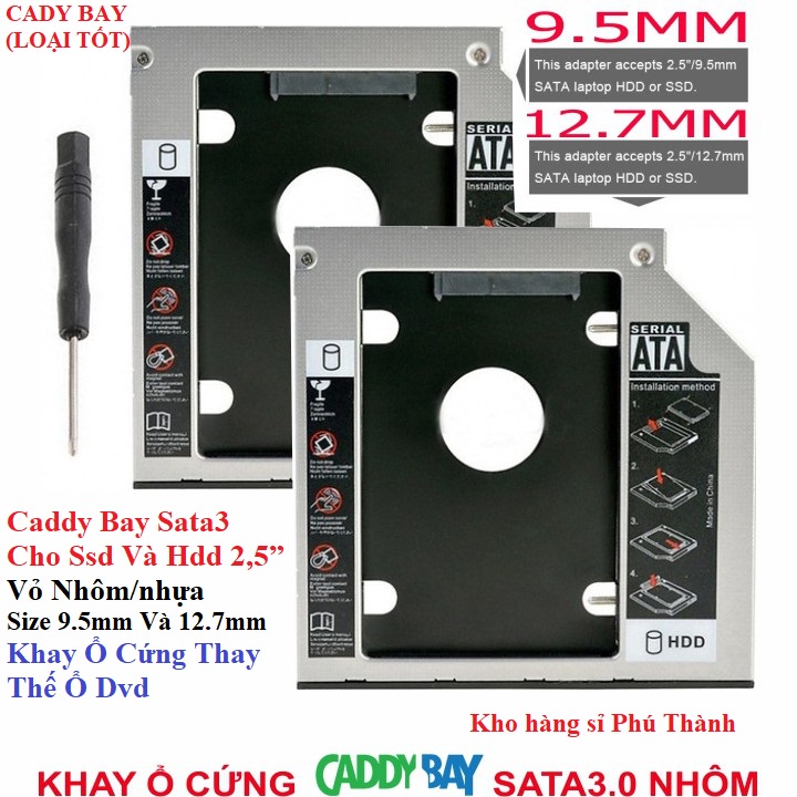 Caddy Bay Sata3 Tốt Cho Ssd Và Hdd 2,5” Size 9.5mm Và 12.7mm – Khay Ổ Cứng Thay Thế Ổ DvdCaddy Bay Sata3 Tốt Cho Ssd Và Hdd 2,5” Vỏ Nhôm/nhựa – Size 9.5mm Và 12.7mm – Khay Ổ Cứng Thay Thế Ổ Dvd