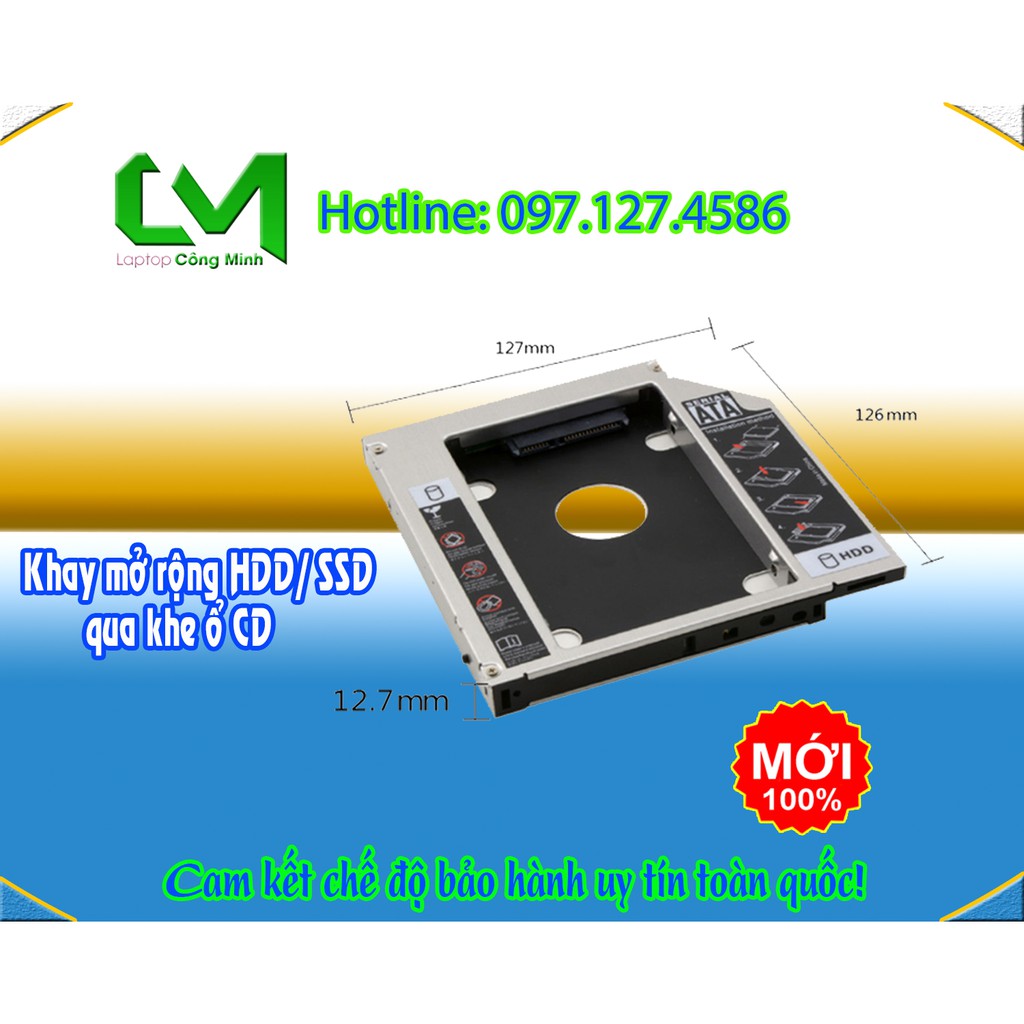 Cady bay Thiết Bị Nâng Cấp Thêm SSD/ HDD Qua Khe Cắm CD Loại Dày - Bảo Hành 3 Tháng