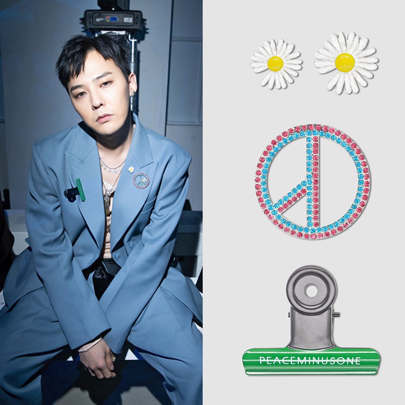 Cài áo thời trang PMO giống GD GDRAGONPhân loại: Logo coup đính đá, kẹp pmo mix xanh, hoa cúc pha lê