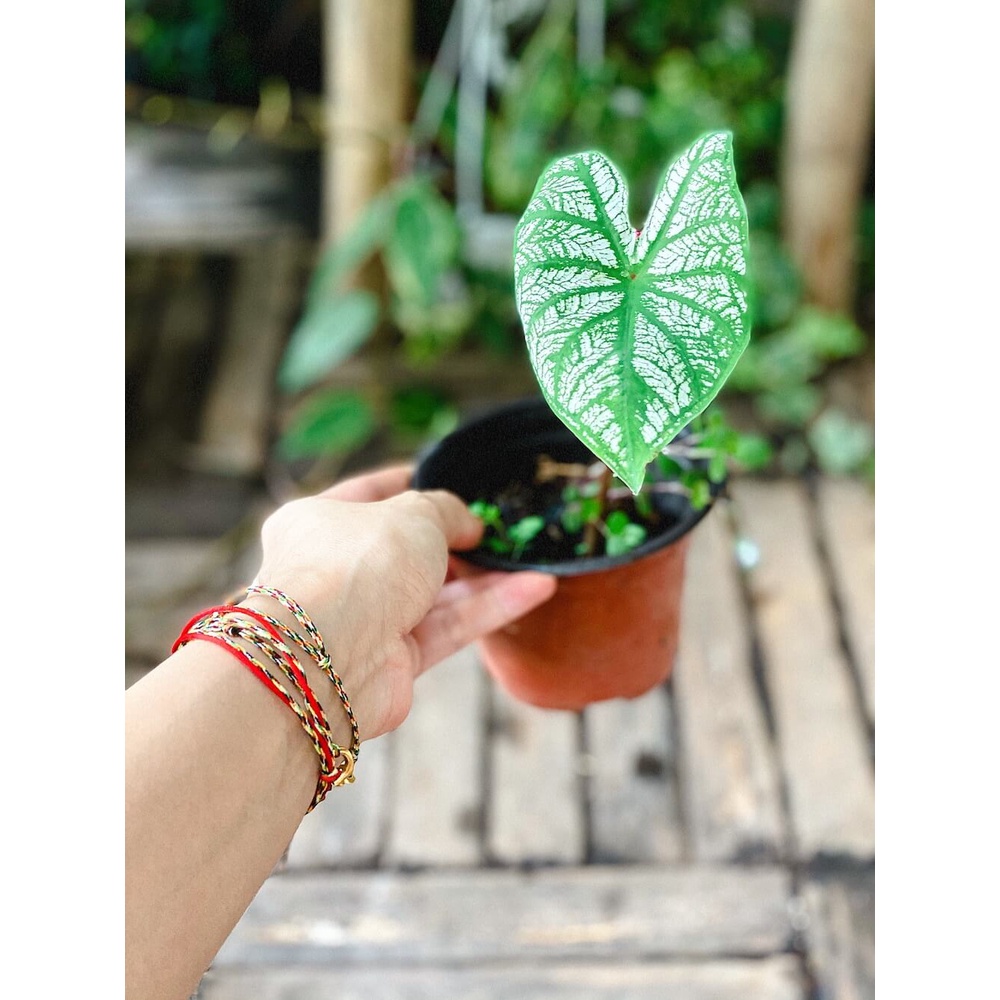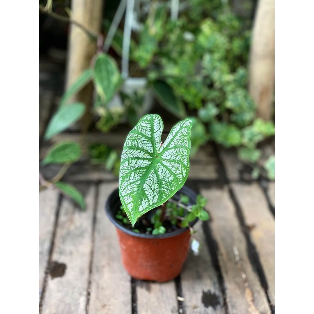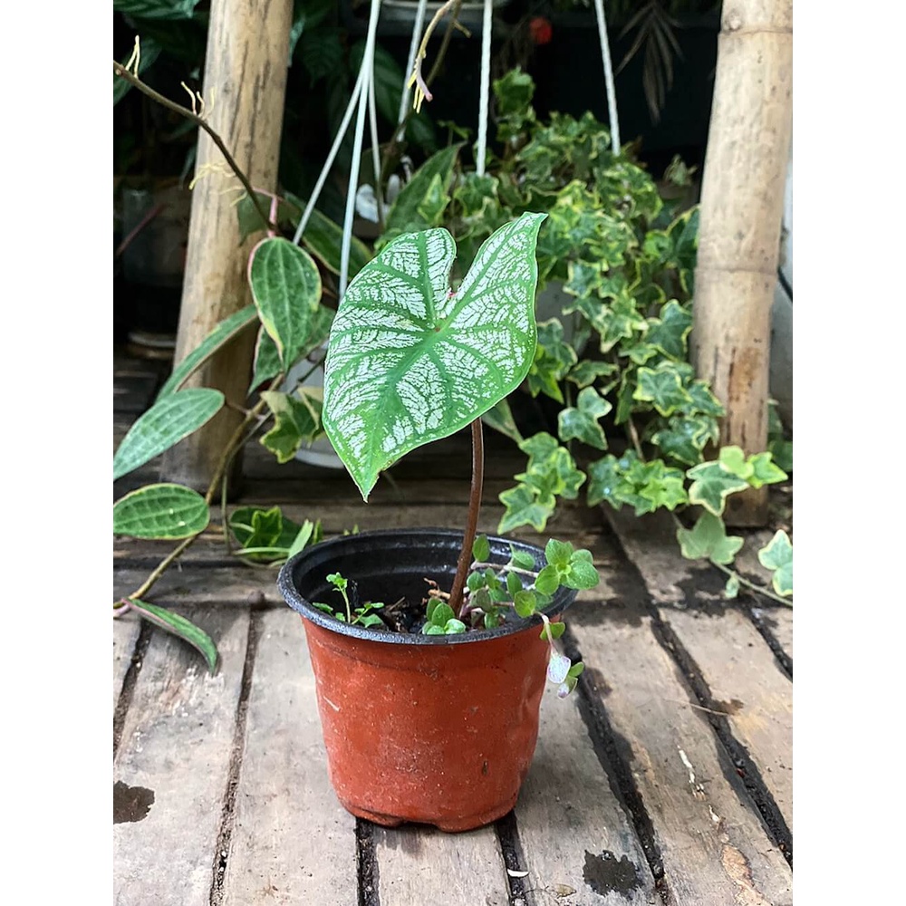 Cây Caladium White Xmas (Môn Giáng Sinh) Size vừa chậu nhựa 10cm