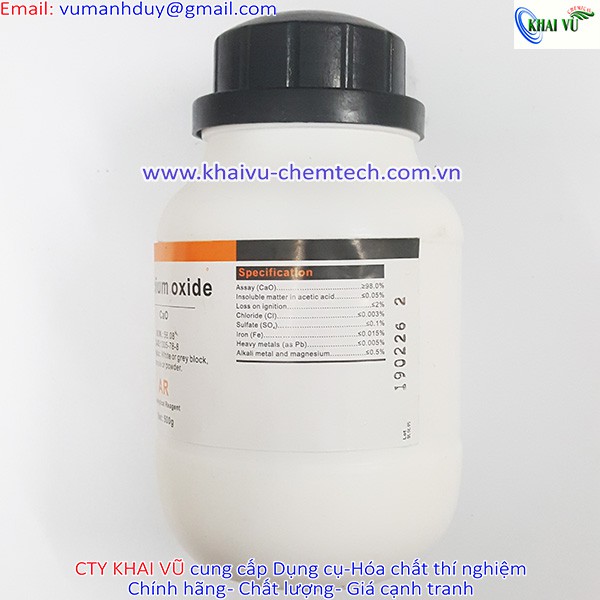 Công ty KHAI VŨ chuyên cung cấp Hóa chất Calcium oxide CAS 1305-78-8 CaO lọ 500g canxi oxit TINH KHIẾT