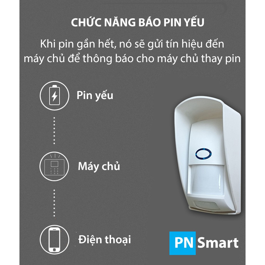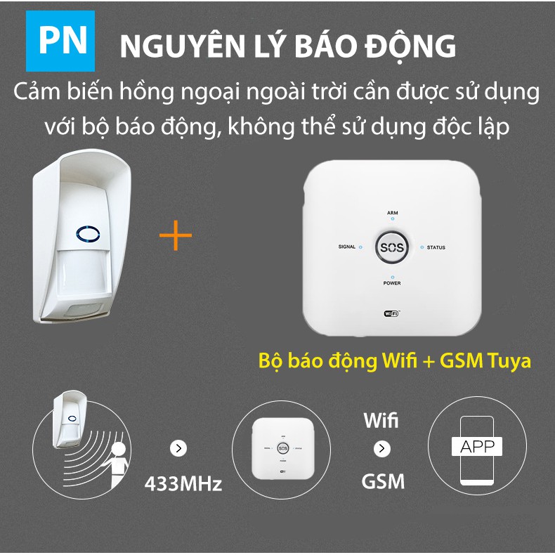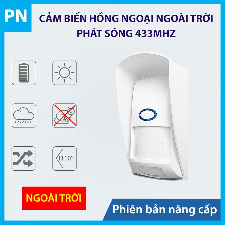 - Lưu ý: Cảm biến phải kết hợp mới bộ báo động trung tâm, không hoạt động độc lập.- Là một máy dò hồng ngoại chuyên dùng NGOÀI TRỜI khi phát hiện ra có người chuyển động trong vùng quét thì cảm biến sẽ phát tín hiệu về trung tâm qua sóng 433MHz.