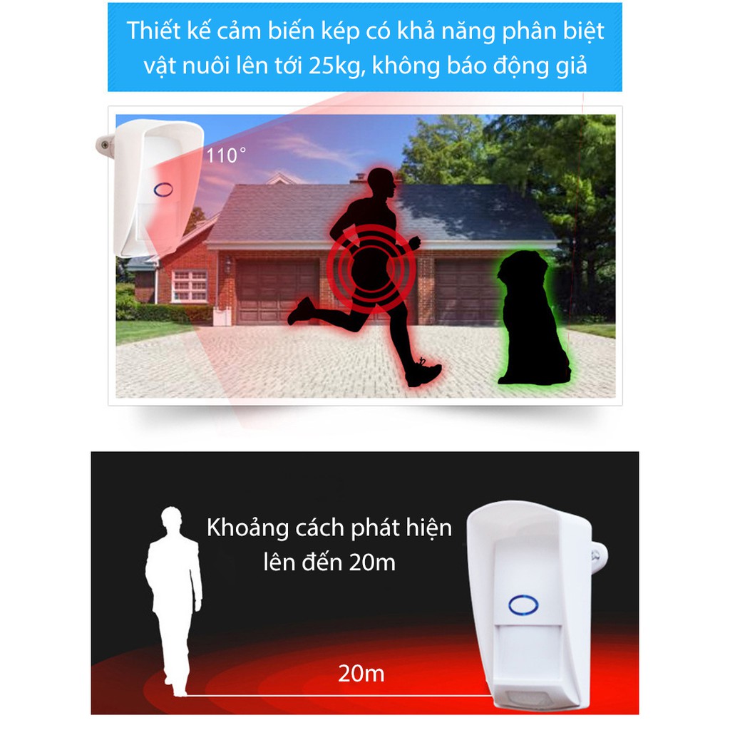 - Sử dụng mắt cảm biến hồng ngoại kép giúp chống được chuyển động của các vật nuôi nhỏ như chó, mèo, chuột… (cơ thể phải đủ lớn để cắt qua đồng thời 2 tia hồng ngoại phát ra từ 2 mắt thì mới có tín hiệu).