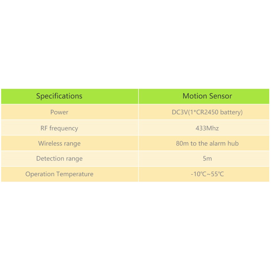 Dùng chung với hệ thống báo động thông minh Tuya Smart LifeNguồn: Pin CR2450 3V