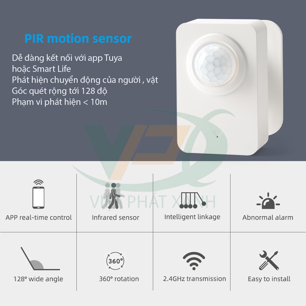 Cảm biến chuyển động Tuya thông minh Wifi/ZigbeeMỗi khi phát hiện chuyển động, thiết bị sẽ thông báo ngay lập tức. Với tính năng phát hiện chuyển động này chúng ta dễ dàng kết hợp với các thiết bị thông minh khác trong hệ sinh thái Tuya để tạo ngữ cảnh .