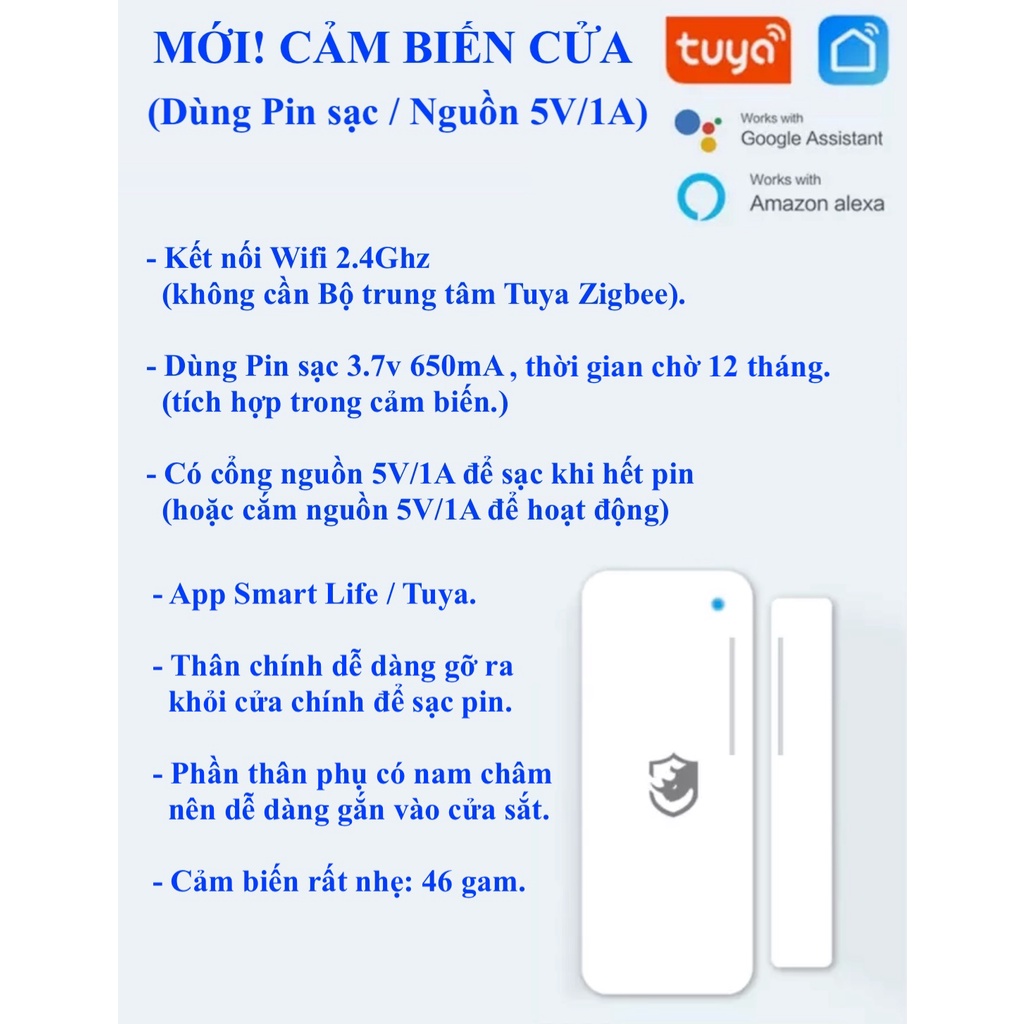 Giới thiệu Cảm biến cửa , cảm biến rung thuộc Hệ sinh thái Tuya, kết nối Wifi / Zigbee, App Smart Life/ Tuya -