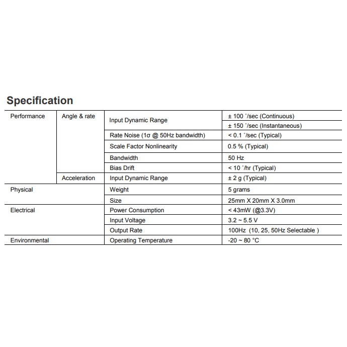 điện áp tiêu thụ: < 43mW (@3.3V)