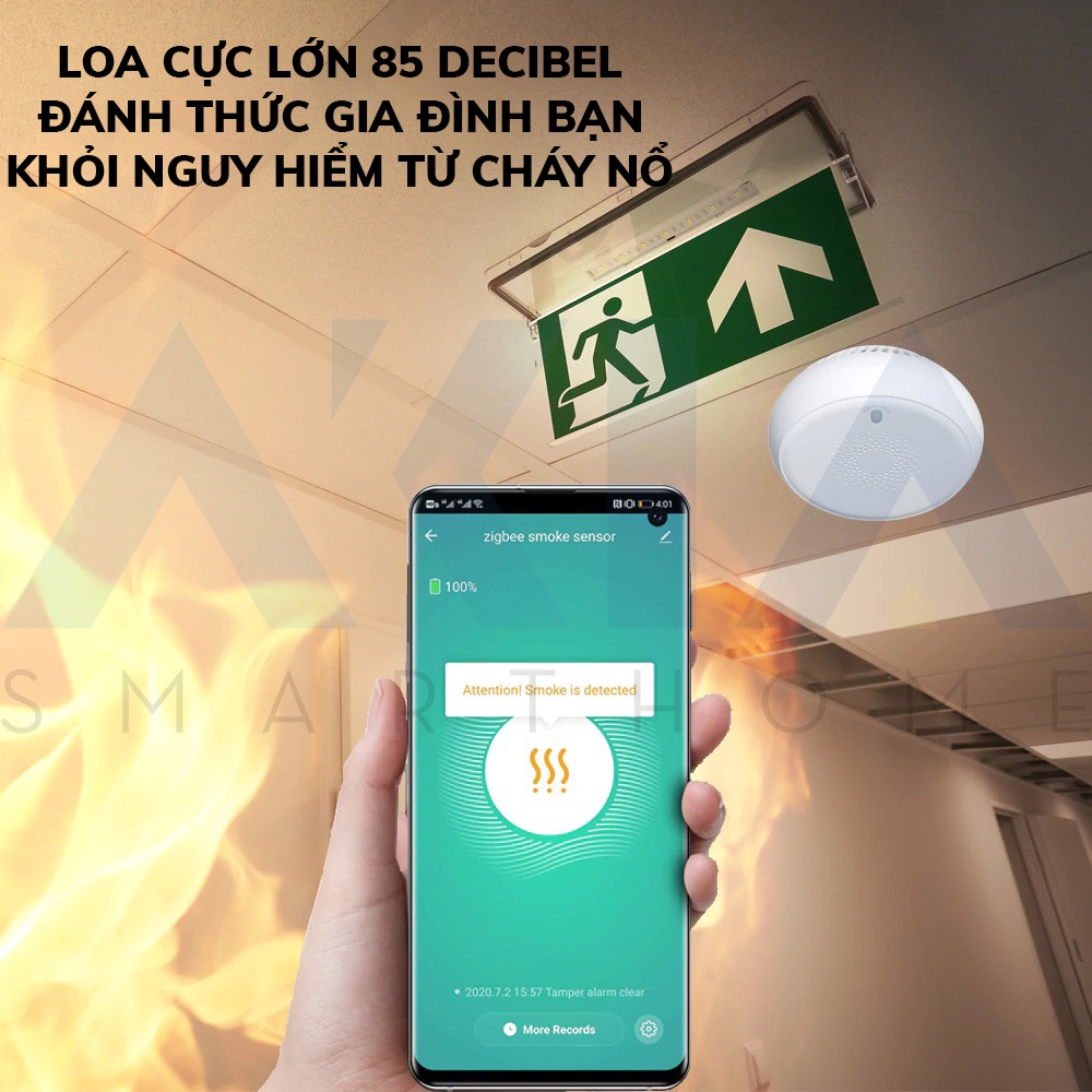 Giới thiệu Cảm biến khói Tuya AKIA Zigbee, thiết bị báo cháy sensor Photoelectric cực nhạy, kết nối app Smart Life