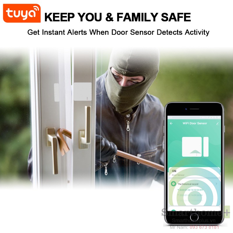 - Cảm biến phát hiện mở cửa không dây cảnh báo đến điện thoại.