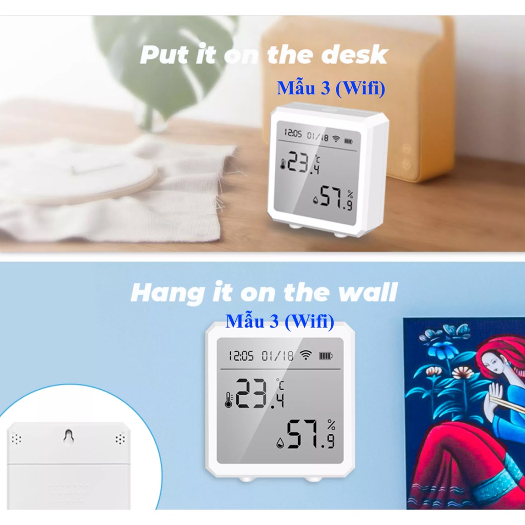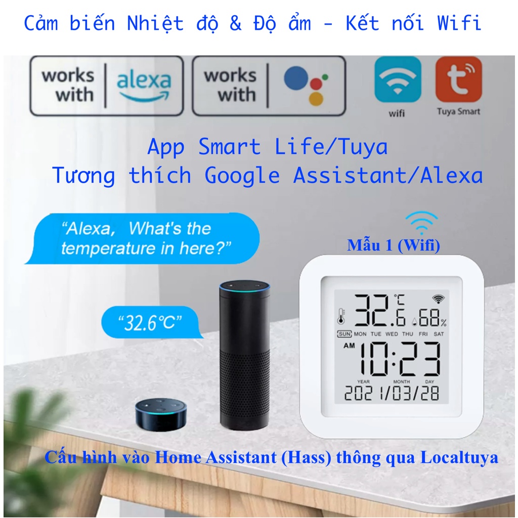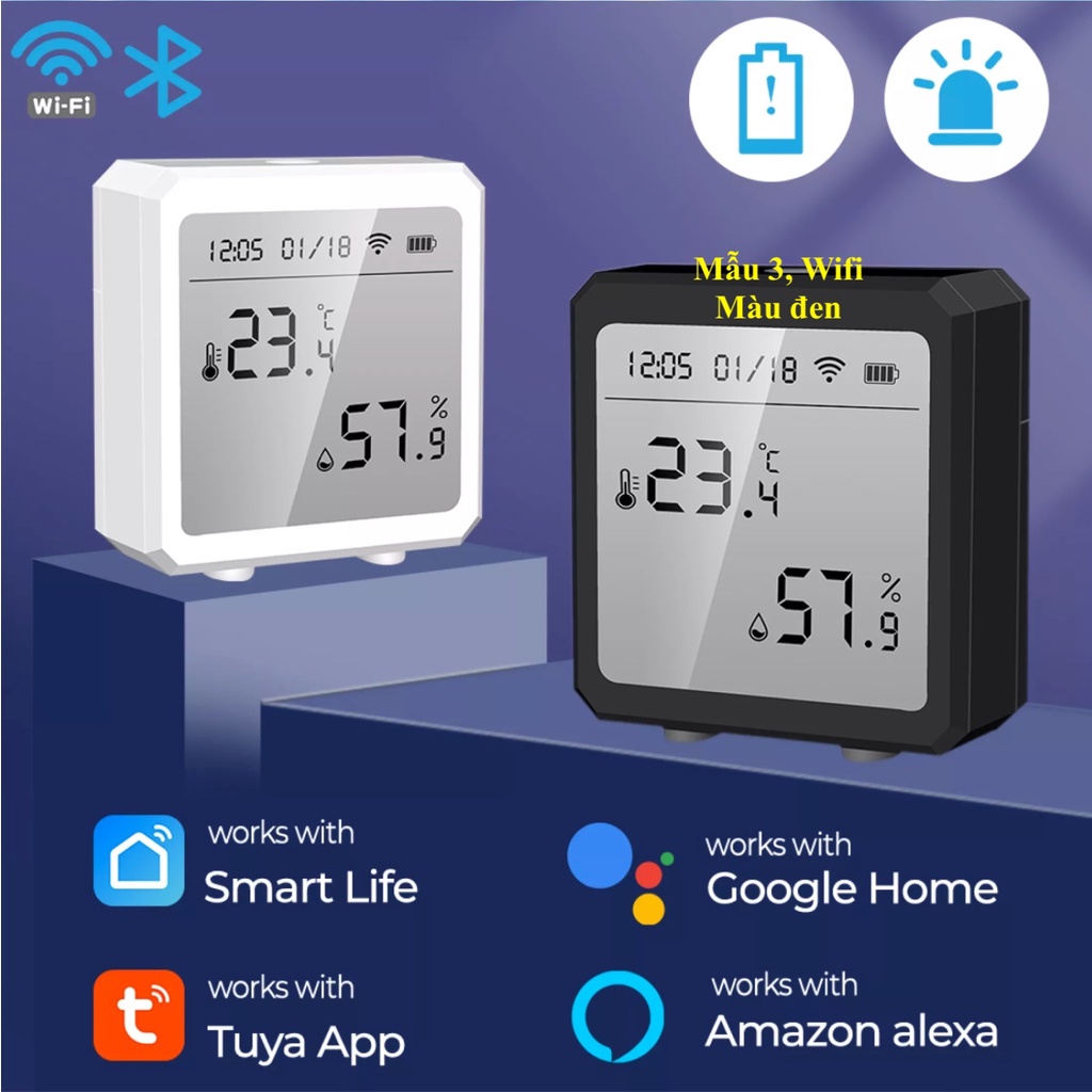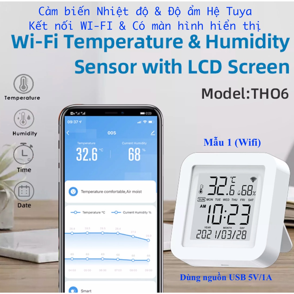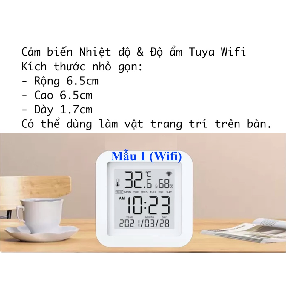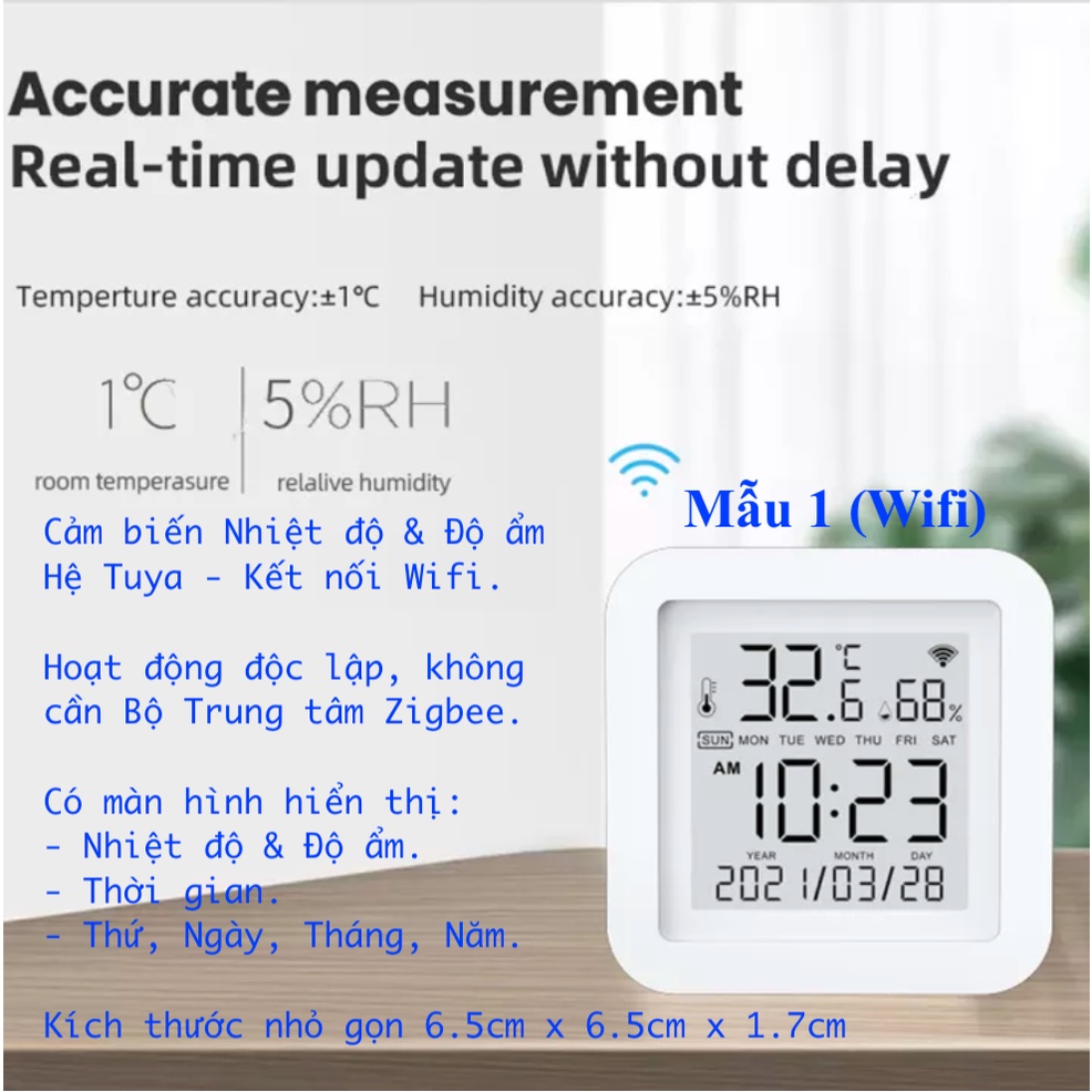 Cảm biến Nhiệt độ & Độ ẩm, có màn hình hiển thị, kết nối Wifi, Hệ Tuya, App Smart Life/ Tuya