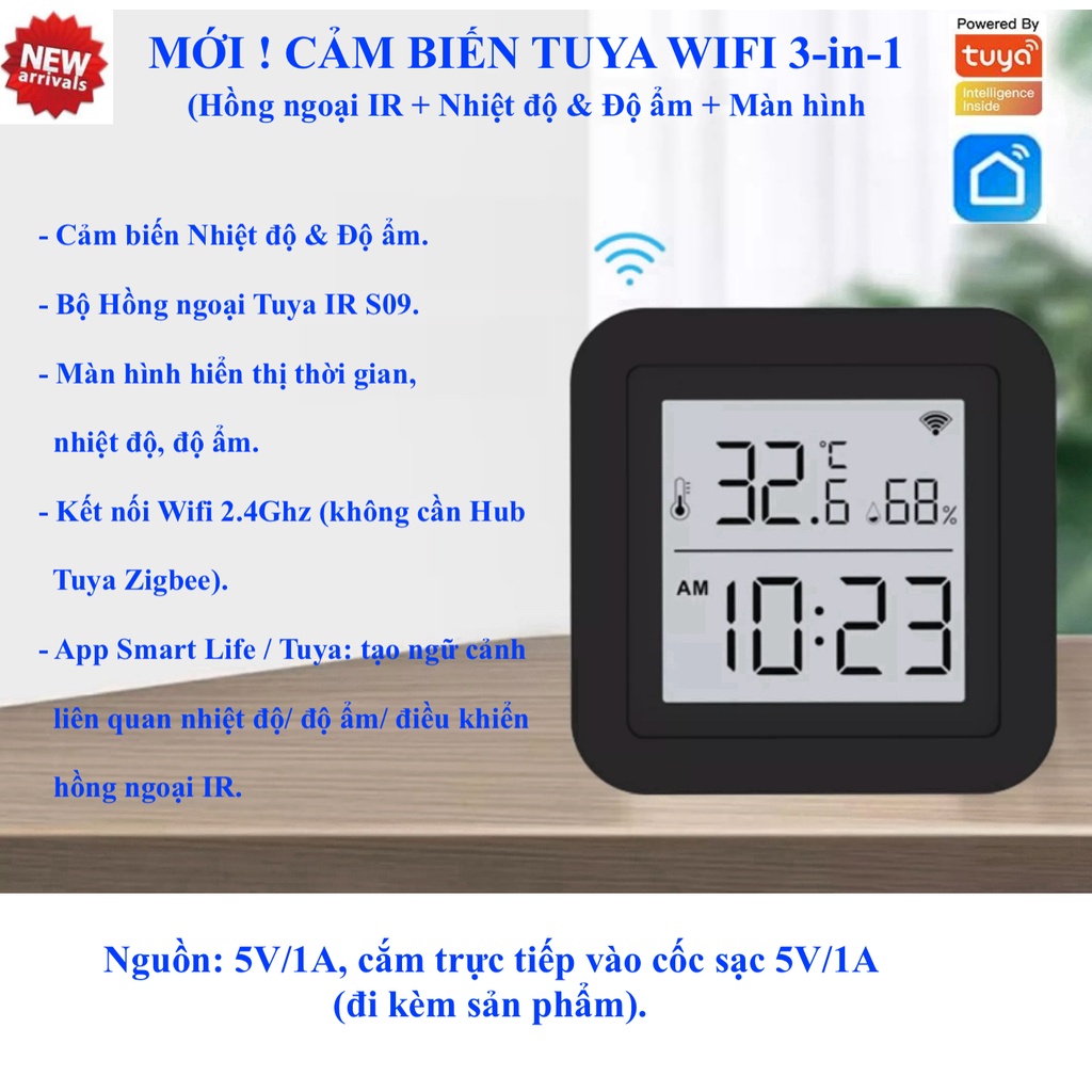 Thiết Bị Điện Gia Dụng > Thiết bị điều khiển từ xa || Cảm biến Nhiệt độ & Độ ẩm, có màn hình hiển thị, kết nối Wifi, Hệ Tuya, App Smart Life/ TuyaCòn hàng