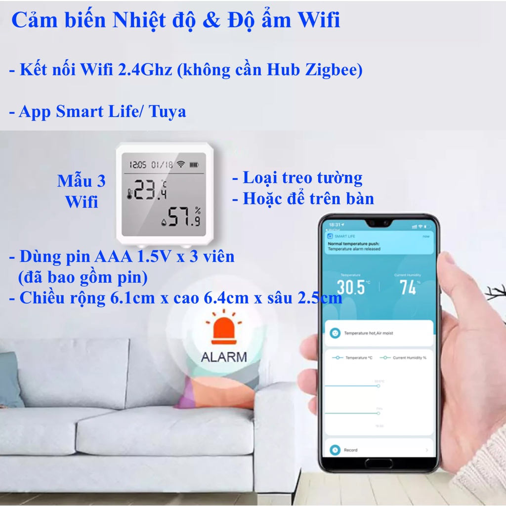 Giới thiệu Cảm biến Nhiệt độ & Độ ẩm, có màn hình hiển thị, kết nối Wifi, Hệ Tuya, App Smart Life/ Tuya