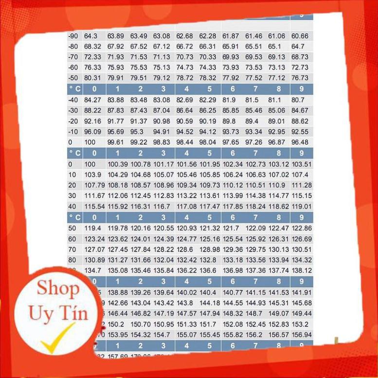 - Bảng thông số điện trở của PT100 ứng với nhiệt độ đo (xem hình ảnh)
