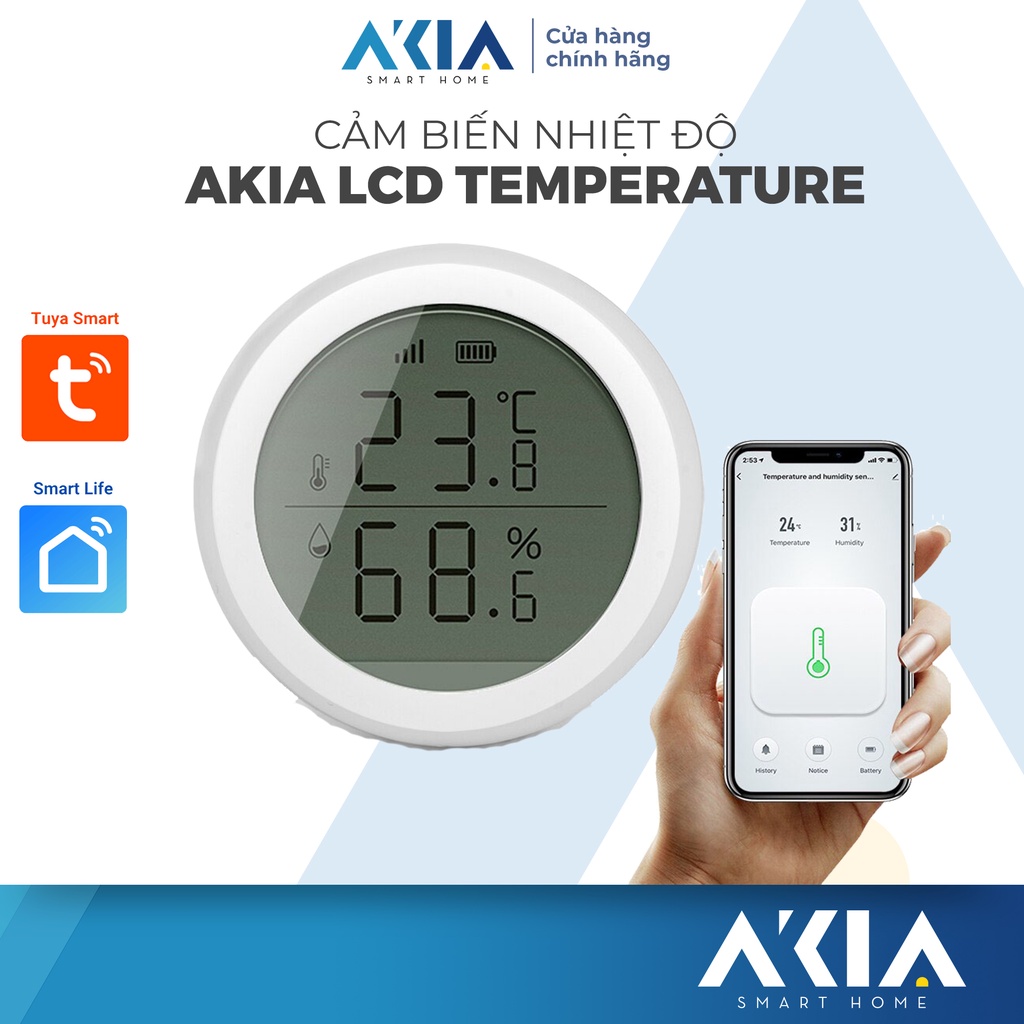 Thiết Bị Điện Gia Dụng > Thiết bị điều khiển từ xa || Cảm biến nhiệt độ và độ ẩm AKIA ZigBee có màn hình LCD - Đo nhiệt độ và độ ẩm, Hiển thị lên màn hình và App Smart LifeCòn hàng