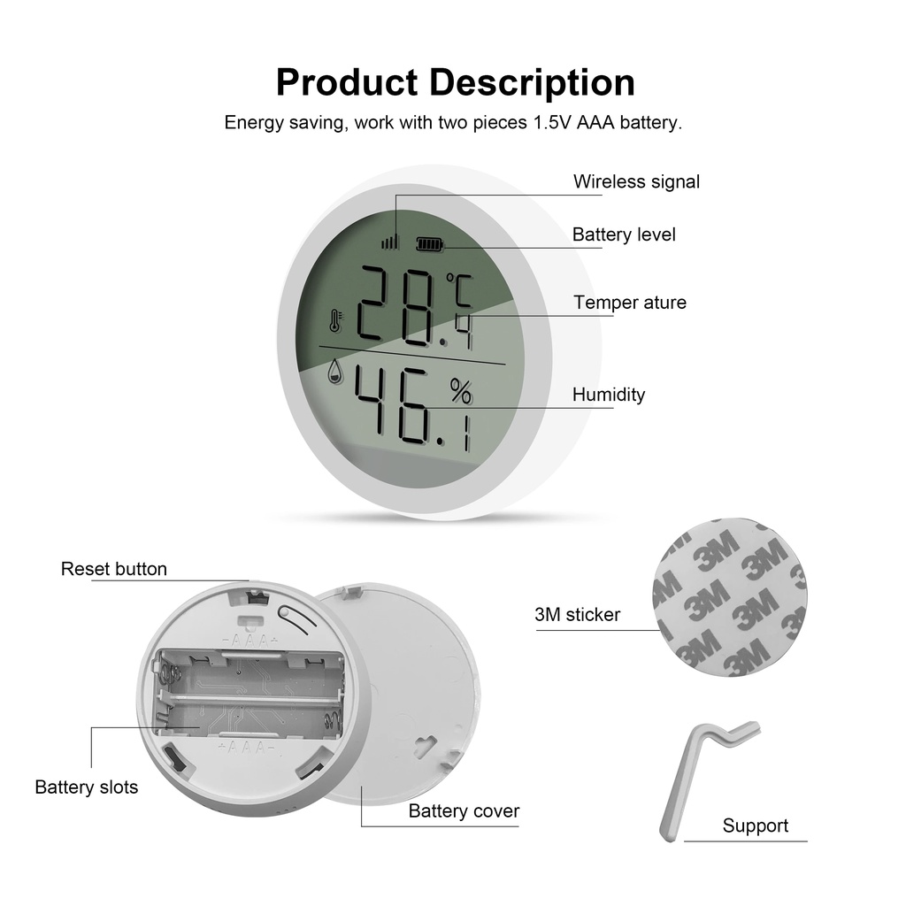Sản phẩm có khả năng đo được nhiệt độ, độ ẩm và hiển thị thông số lên màn hình LCD đồng thời gửi thông báo đến điện thoại của bạn cảnh báo trong những trường hợp điều kiện môi trường bất bình thường thông qua app Tuya Smart Life được tải về từ kho ứng dụng.