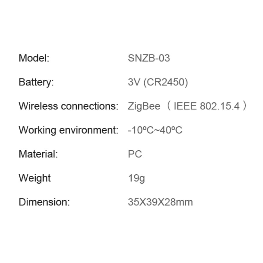 Cảm biến phát hiện chuyển động Sonoff SNZB-03, kết nối với Bộ trung tâm Zigbee Sonoff.Khoảng cách quét hiệu quả: 6m - Góc quét: 110 độ.