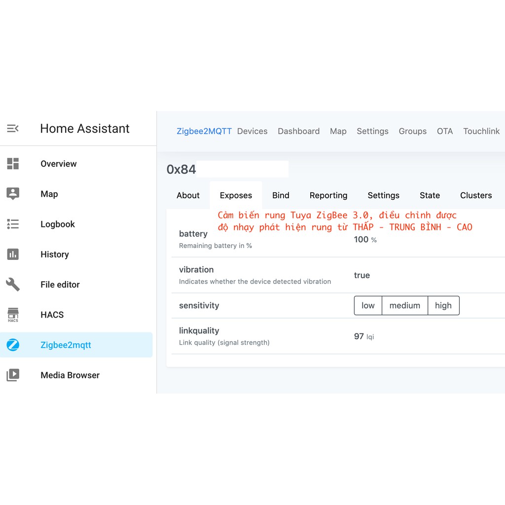 Có thể cấu hình vào Home Assistant (Hass) thông qua Zigbee2mqtt hoặc ZHA.