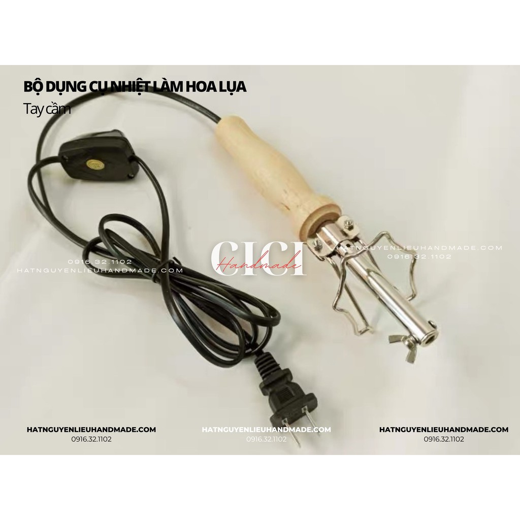 Tay cầm cán gỗ, đaauf nhiệt lẻ dụng cụ làm hoa lụa hoa vải Cici Handmade hạt nguyên liệu thêu đính kết