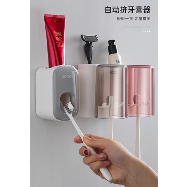 GIỚI THIỆU SP : kệ đựng 2 cốc 3 cốc và 1 nhả kem đánh răng ECOCO Cao cấpSản phẩm gồm dụng cụ nặn kem đánh răng tự động bên phải của ảnh. Chất liệu PVC bền, đẹp thân thiện với môi trường, an toàn với sức khỏe. - Dễ dàng thay đổi vị trí - Giữ cho bàn chải, cốc, kem đánh răng, sạch sẽ Phần để tuýp kem đánh răng là dạng nặn kem tự động, chỉ cần đưa đầu bàn chải vào nhấn nhấn là kem đánh răng chảy xuống, rất tiện Sử dụng công nghệ hút chân không hiện đại hút siêu dính, không cần khoan vít.