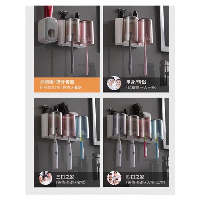 Sản phẩm gồm dụng cụ nặn kem đánh răng tự động bên phải của ảnh. Chất liệu PVC bền, đẹp thân thiện với môi trường, an toàn với sức khỏe. - Dễ dàng thay đổi vị trí - Giữ cho bàn chải, cốc, kem đánh răng, sạch sẽ Phần để tuýp kem đánh răng là dạng nặn kem tự động, chỉ cần đưa đầu bàn chải vào nhấn nhấn là kem đánh răng chảy xuống, rất tiện Sử dụng công nghệ hút chân không hiện đại hút siêu dính, không cần khoan vít.