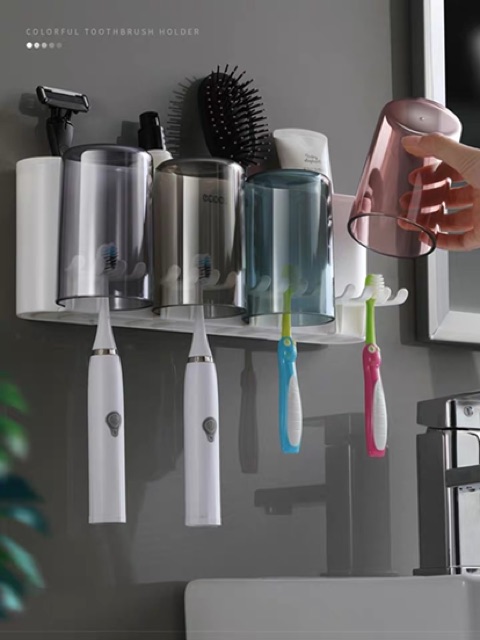 GIỚI THIỆU SP : kệ đựng 2 cốc 3 cốc và 1 nhả kem đánh răng ECOCO Cao cấpSản phẩm gồm dụng cụ nặn kem đánh răng tự động bên phải của ảnh. Chất liệu PVC bền, đẹp thân thiện với môi trường, an toàn với sức khỏe. - Dễ dàng thay đổi vị trí - Giữ cho bàn chải, cốc, kem đánh răng, sạch sẽ Phần để tuýp kem đánh răng là dạng nặn kem tự động, chỉ cần đưa đầu bàn chải vào nhấn nhấn là kem đánh răng chảy xuống, rất tiện Sử dụng công nghệ hút chân không hiện đại hút siêu dính, không cần khoan vít.