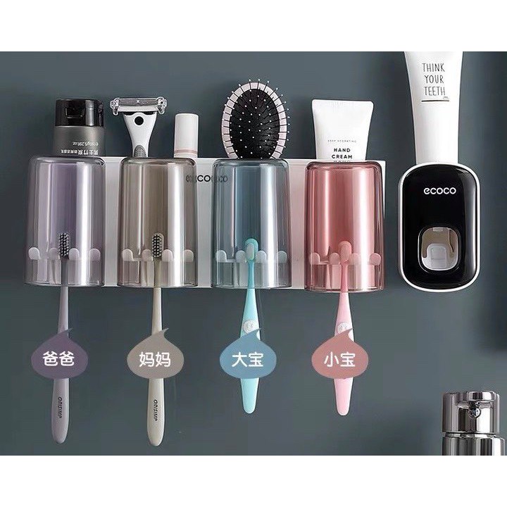 Nhà cửa & Đời sống > Đồ dùng phòng tắm > Kệ đựng bàn chải, kệ nhả kem đánh răng || Bộ cắm chải kèm nhả kem Ecoco cao cấp sang trọng 4 cốc trong suốtCòn hàng