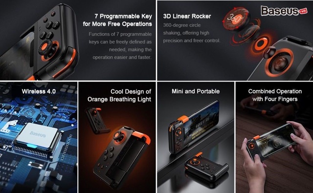 Giới thiệu Tay cầm chơi Game 1 tay Baseus GAMO GA05 Mobile Game One-Handed (7 keys Programmable,Bluetooth 4.0, Portable )