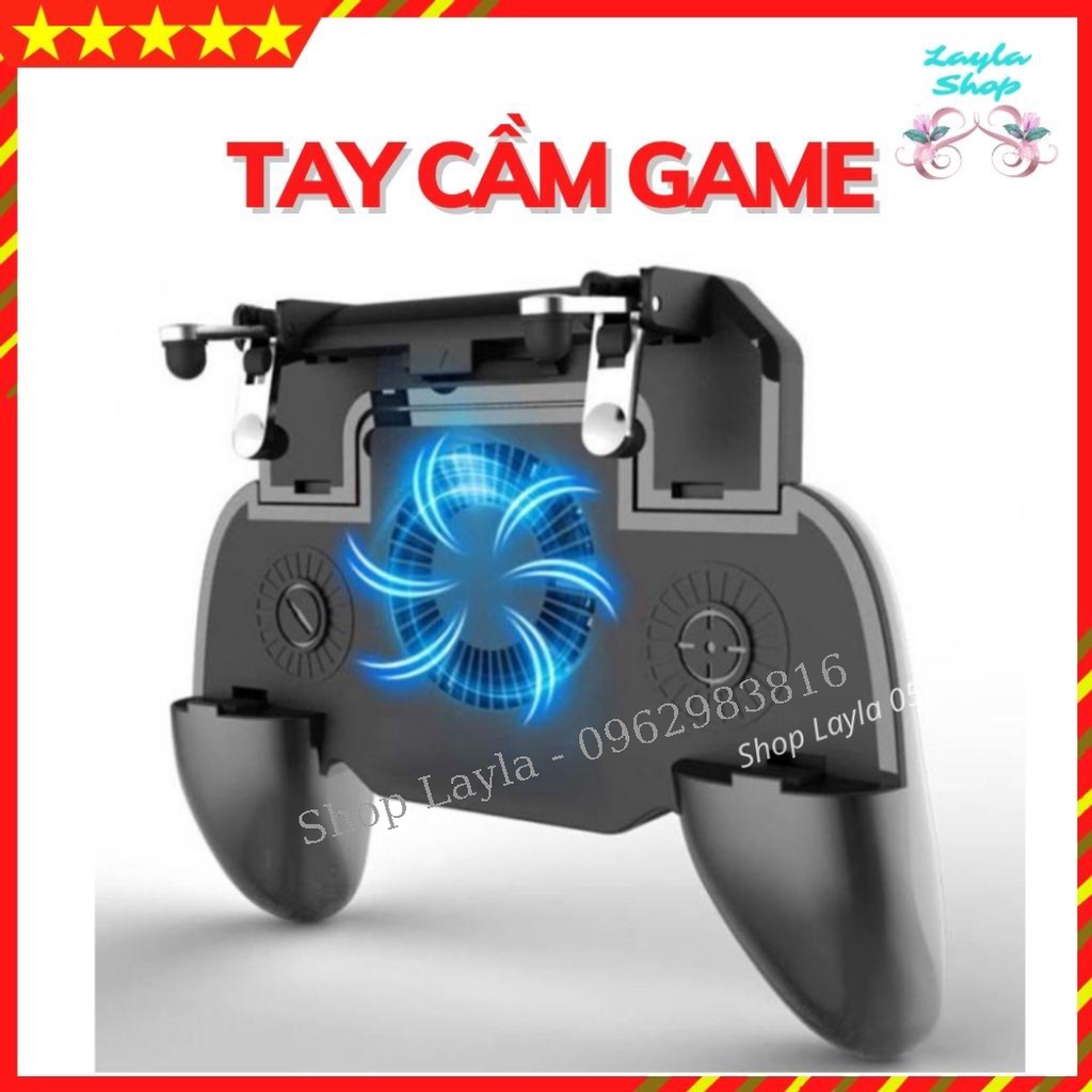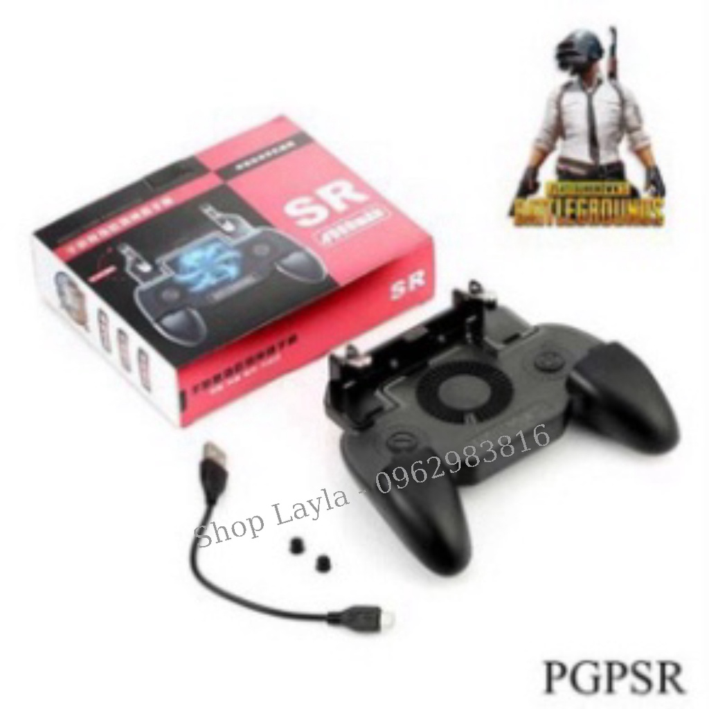 Tay cầm chơi PUBG, tay cầm chơi game điện thoại - SR GamePad. Phụ kiện hỗ trợ chơi PUBG Mobile, RULES, Free Fire, ...Phụ kiện chơi game mobile. Phiên bản tay cầm tích hợp 4 trong 1: tản nhiệt điện thoại, nút hỗ trợ chơi game, gamepad, sạc dự phòng
