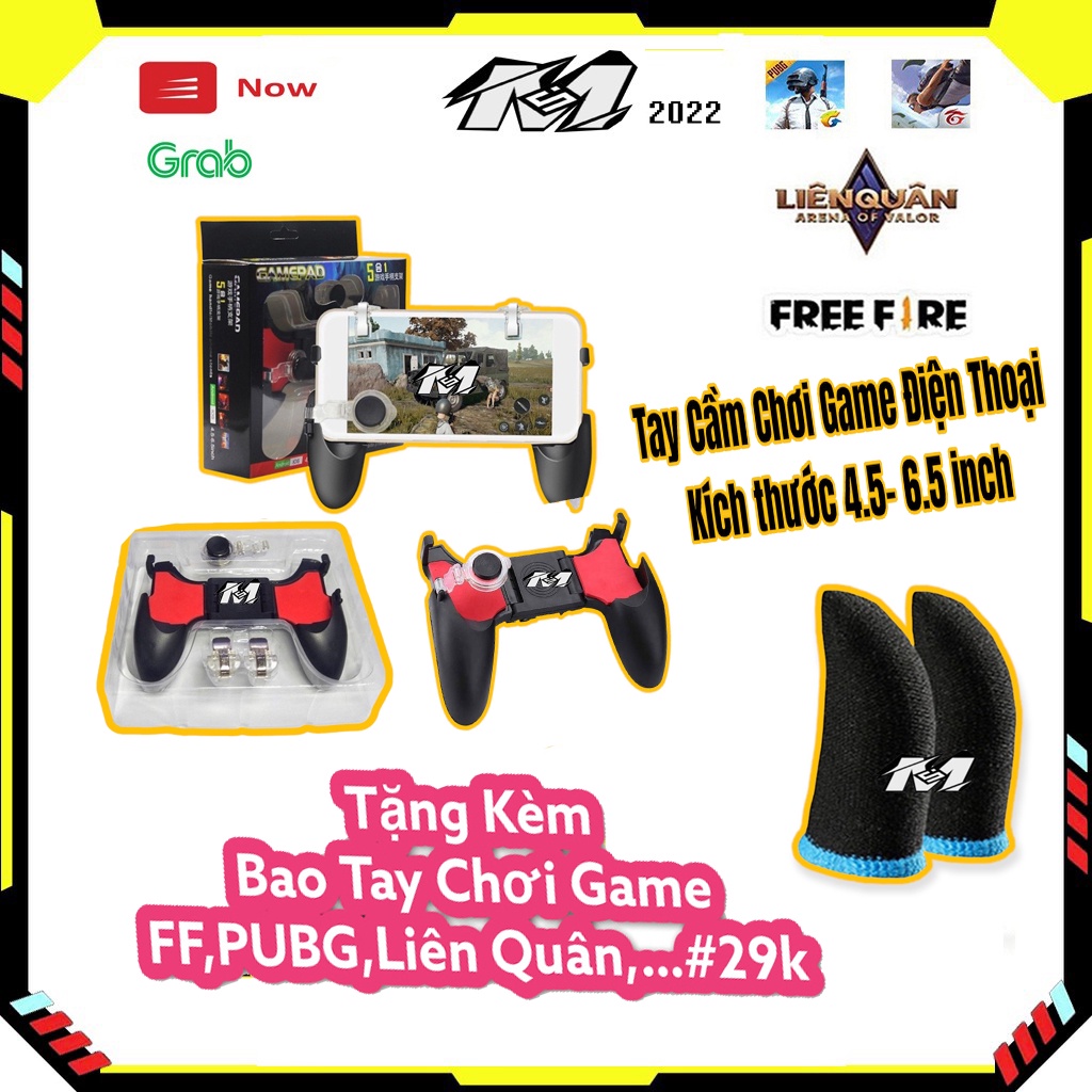 Tay cầm chơi game 5in 1,Tặng kèm găng tay chơi game chống mồ hôi, Phụ kiện chơi game Pubg, FF, liên quân mobile