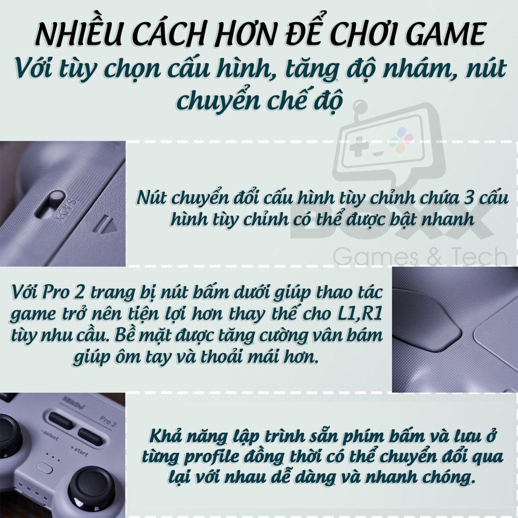 Nếu đã quá quen với những chiếc tay cầm Xbox one S, PS4, Joycon hay Pro Controller của Nintendo với mức giá khá chát và giới hạn khả năng tương thích, thì đã đến lúc bạn nên chọn Pro 2Được nâng cấp từ phiên bản SN30 Pro + nay Pro 2 được cải tiến và trang bị thêm được những tính năng chưa từng có.