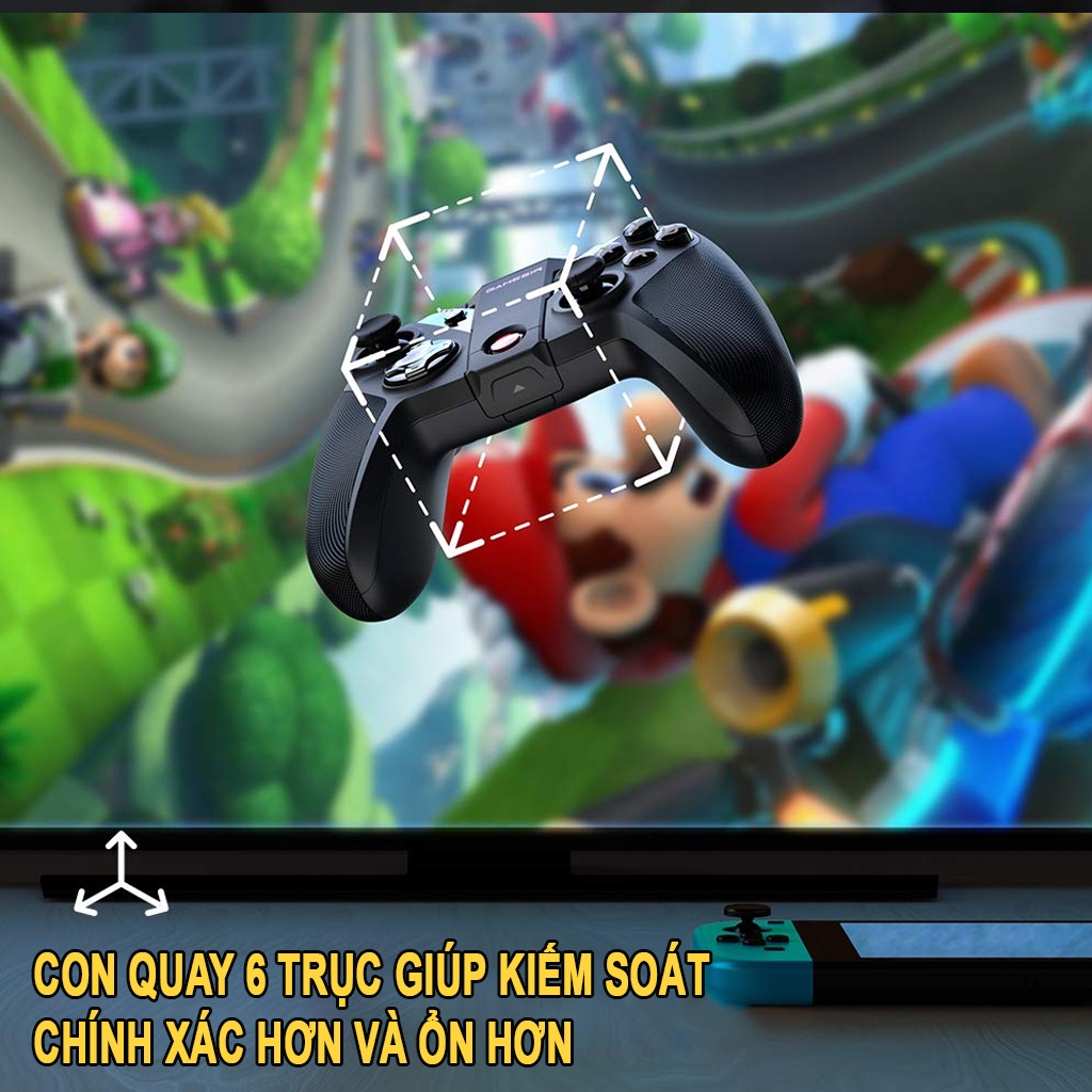 GameSir G4 pro hiện được trang bị con quay hồi chuyển sáu trục. Nó hỗ trợ điều khiển chuyển động và cũng nhạy hơn trong việc nhận biết chuyển động của người chơi, sau đó được phản ánh trong trò chơi.