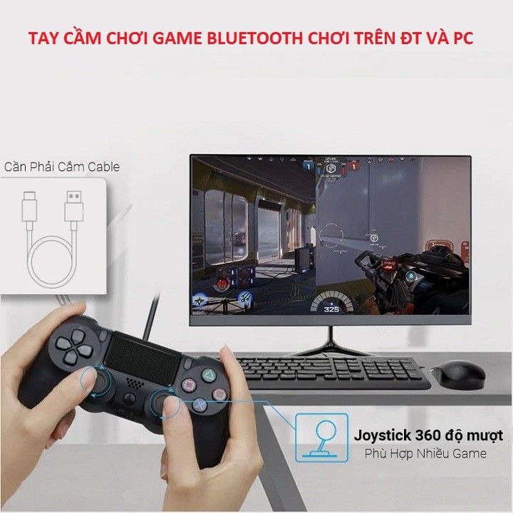 * Lưu ý: Đối với kết nối máy tính, chỉ máy tính có trang bị bluetooth mới có thể kết nối được với tay cầm như laptop hoặc bộ pc đã trang bị thêm kết nối bluetooth, hoặc bạn kết nối bằng dây có sẵn trong hộp tay cầm