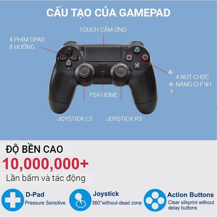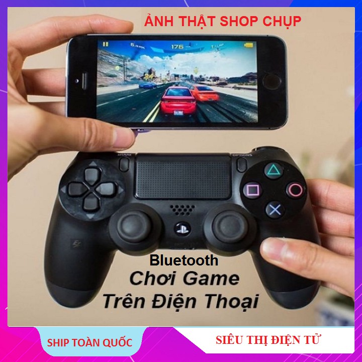 Tay Cầm Chơi Game Bluetooth, Không Dây DualShock 4 Full Chức Năng Dùng Cho Điện Thoại Laptop Máy PC* Thiết kế tay cầm thuận tiện với các nút bấm nhạy, cảm ứng hiện đại.