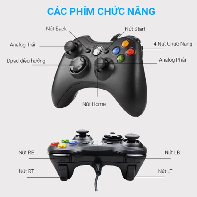 + Tay cầm Xbox là hiện là tiêu chuẩn vàng cho tất cả các tựa game . Không giống như tay cầm thường tay cầm Xbox 360 được Mircosoft phát triển sẽ là chuẩn tay cầm mới trên PC