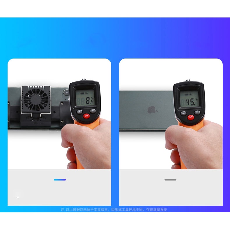 Quạt tản nhiệt điện thoại sử dụng hệ thống điện tử bán dẫn để giảm nhiệt độ điện thoại thông minh của bạn nhanh chóng trong vòng 3 giây. Tấm silicone dẫn nhiệt cao có hiệu quả truyền dẫn hiệu quả cao, có thể giảm tiêu thụ điện năng một cách hiệu quả và bảo vệ bề mặt điện thoại thông minh của bạn.
