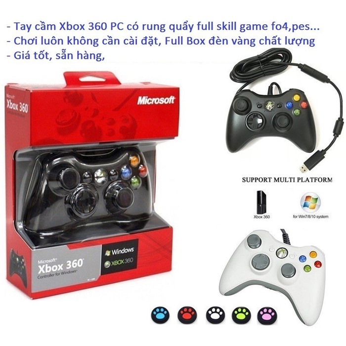 - Dùng trên 2 hệ máy : Máy tính (PC) & Xbox 360- Chiều dài dây cable 1,8 Mét: khoảng cách hợp lý sử dụng với màn hình PC- Đầu cắm USB- Dễ dàng cài đặt và tinh chỉnh cho PC- Hỗ trợ và tương thích với tất cả các dòng thiết bị , Android , PC , Xbox ...- Phù hợp với Win XP; Win Vista; Win 7 hoặc cao hơn- Hỗ trợ tốt những game nổi tiếng như FIFA Online 3, Need for Speed...- Không cần pin, tay bấm sử dụng nguồn trực tiếp từ máy- Hỗ trợ rung tốt với những game có chế độ rung cho bạn trải nghiệm chơi game tuyệt đỉnh- Thiết kế tay nắm mới và đường nét gọn gàng hơn vào hầu hết các kích cỡ bàn tay.- Hình dáng nhỏ gọn; cầm vừa tay chắc tay giúp bạn chơi thoải mái nhiều giờ