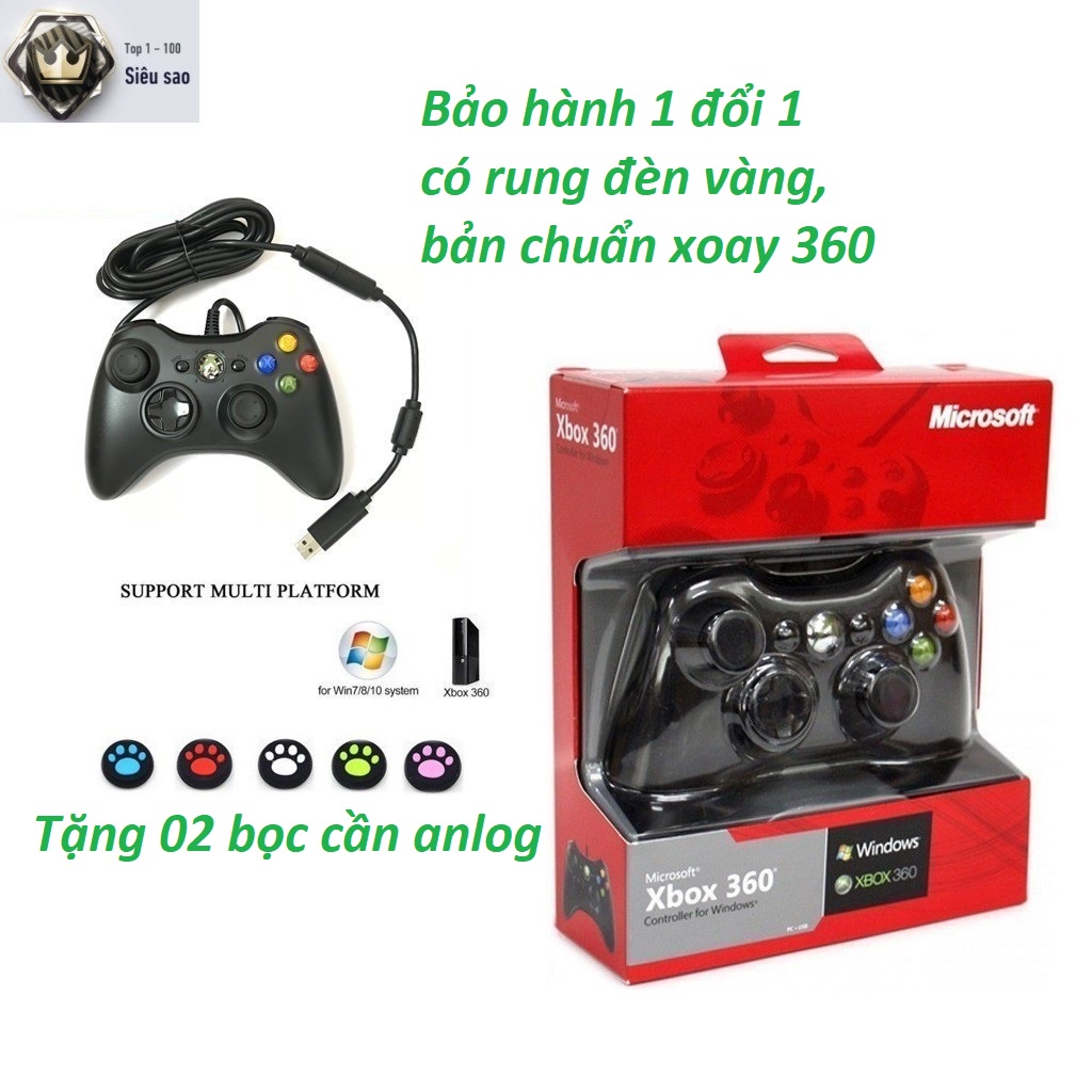 Tay cầm chơi game fifa online 4 xbox 360 full box rung mạnh có dây, skill xoay 360 all game pc, laptop