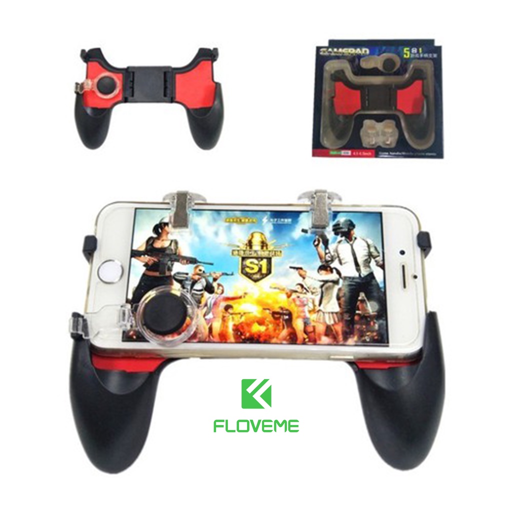 BỘ TAY CẦM CHƠI GAME FLOVEME 5IN1 KÈM NÚT DI CHUYÊN, NÚT CHƠI PUBG S4 THẾ HỆ MỚI 2019==> Bộ tay cầm gồm 5 sản phẩm: tay cầm chơi game, 2 nút bắn, 2 nút di chuyển