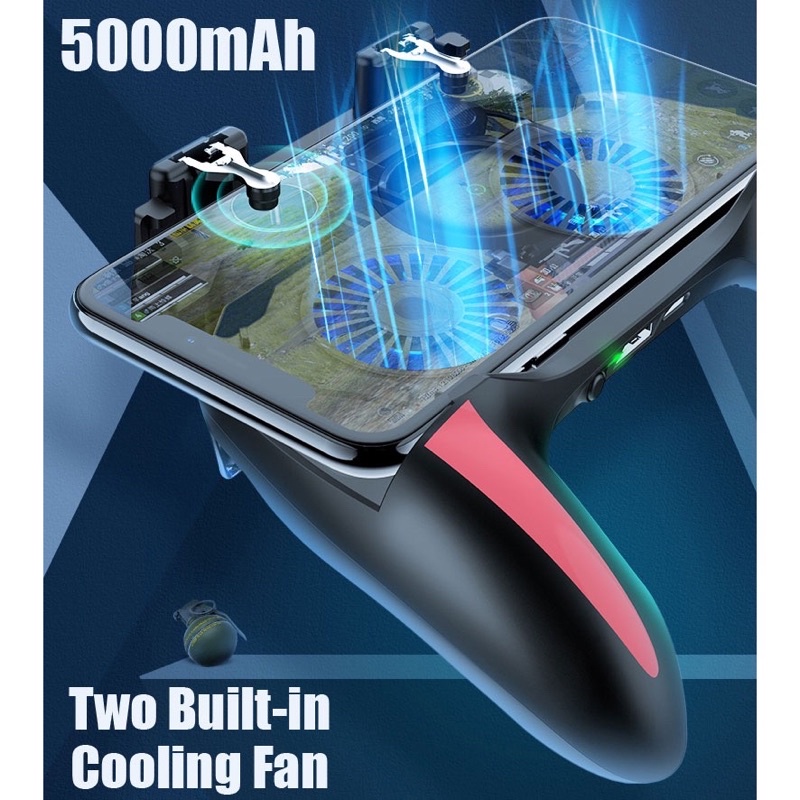 Phiên bản tay cầm chơi game H10 - Double Fan Cooling. Phiên bản tay cầm PUBG đầu tiên với 2 lồng quạt lớn, cho hiệu suất tản nhiệt tối đa, kèm dung lượng pin khủng (phiên bản lớn nhất lên tới 5000mAh). phiên bản có pin bên mình là 2500 - nếu cần 5000mah xin inbox ạ