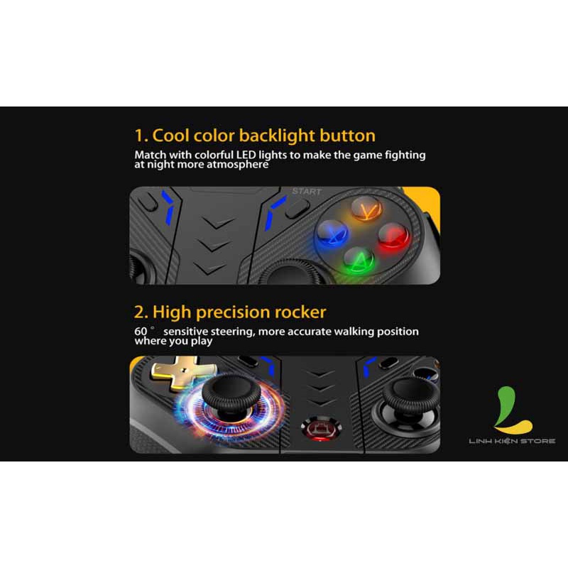 - Kết nối không dây 2.4G :đảm bảo đường truyền ổn định, không độ trễ. Tương thích với thiết bị IOS/Android, PC, bảng điều khiển trò chơi PS3, kết nối không dây bảng điều khiển trò chơi Nitendo Switch.
