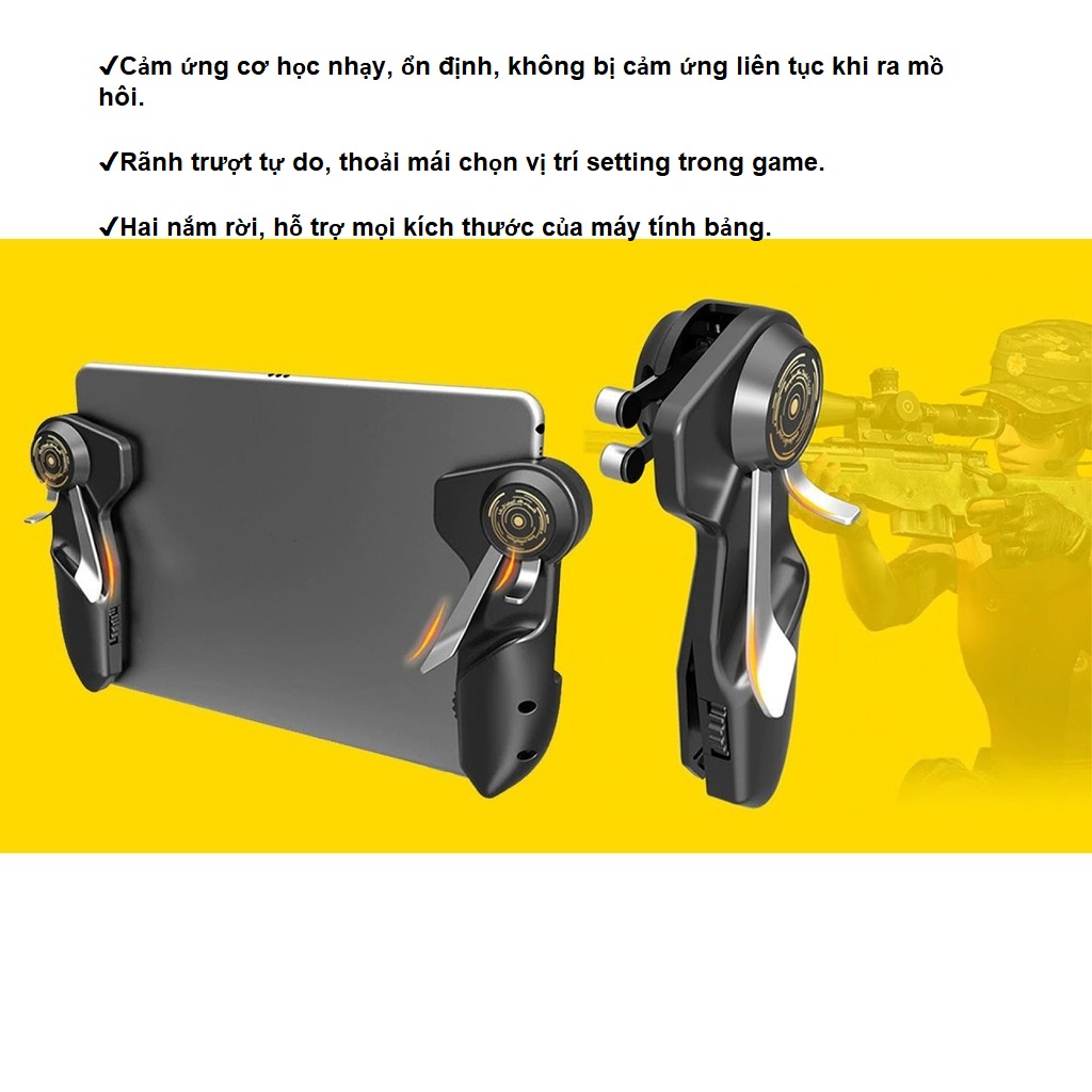 ✔️Lẫy phím bấm hợp kim thép không gỉ bền bỉ, được thiết kế theo vị trí đặt các ngón tay rất tự nhiên; tạo công thái học (Ergonomic) gamepad rất khoa học, giảm đáng kể hiện tượng mỏi tay do chơi thời lượng dài trên những chiếc máy tính bảng cồng kềnh.