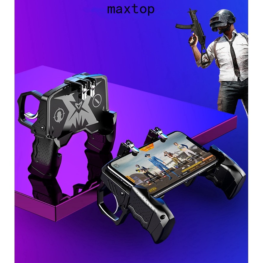 Tay cầm chơi game k21, kèm nút bấm cho game PUBG, ROS, Free Fire..gắn điện thoại tiện lợi.aphuong