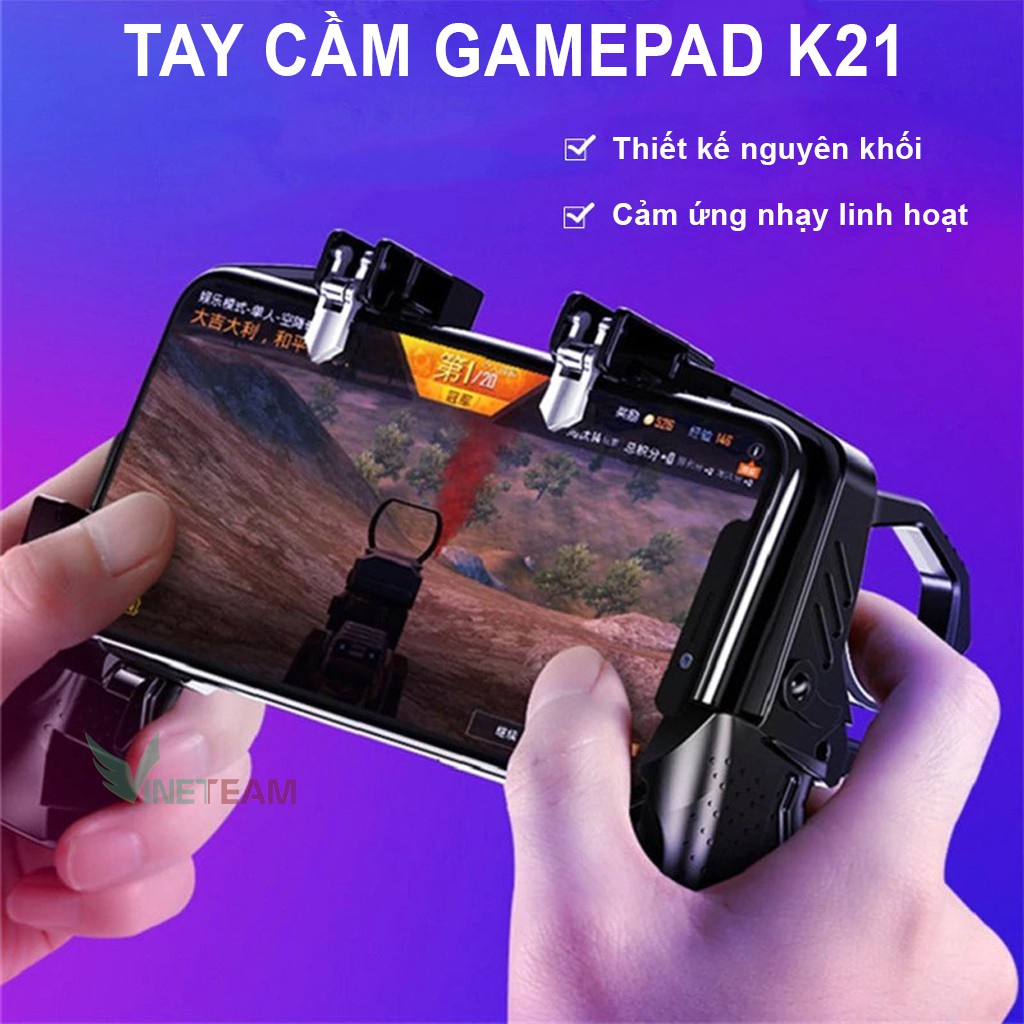 Tay cầm chơi game k21 - kèm nút bấm cho game PUBG, ROS, Free Fire..gắn điện thoại tiện lợi -dc3962
