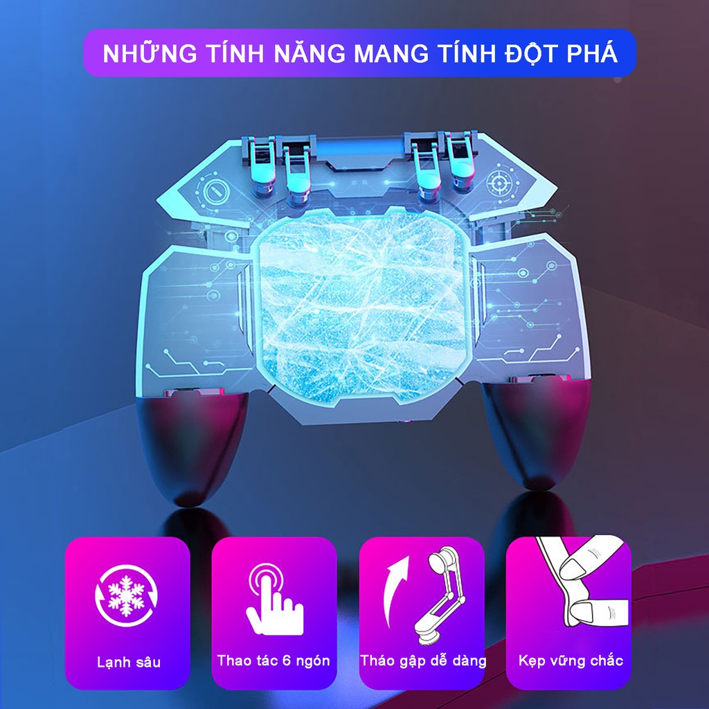 - Tay cầm chơi game PUBG 6 ngón Memo DL88 sử dụng công nghệ tản nhiệt sò lạnh với diện tích tản nhiệt sò lớn cỡ lớn.