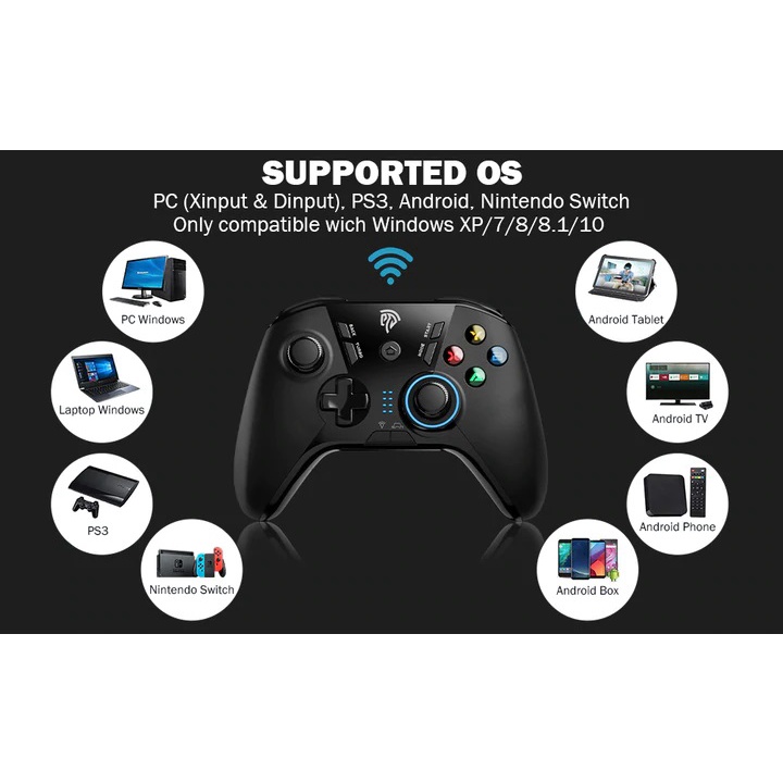 - Tay cầm kết nối với PC, Laptop với hệ thống Windows 11/10/8/7 và tương thích với Android TV, TV, điện thoại Android, PS3, máy tính bảng có hỗ trợ chức năng OTG và phiên bản 5.0 trở lên.