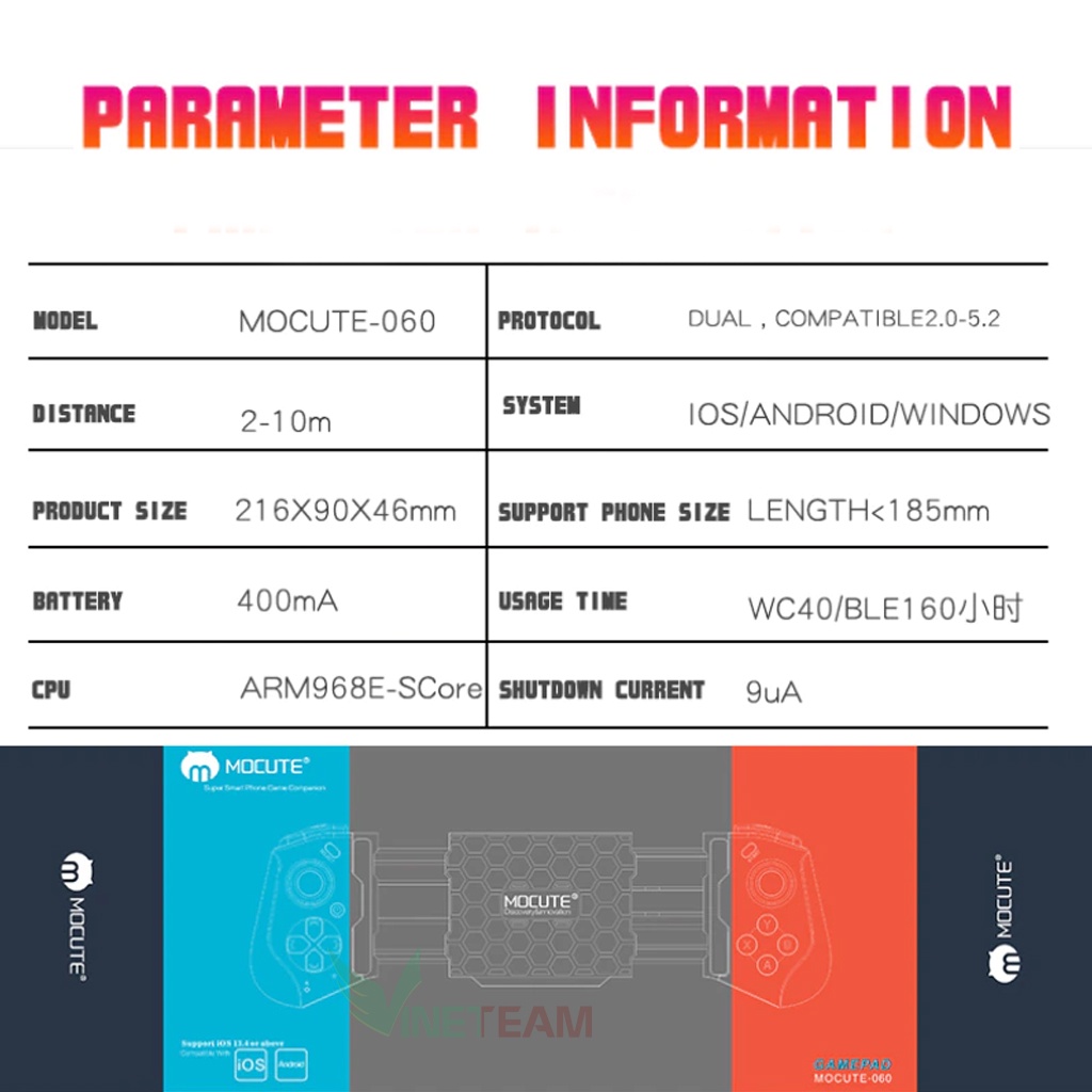 💥 Tên sản phẩm:Tay cầm chơi game không dây Mocute 060 cho điện thoại IOS 14+, Android/PC Model 2022 -dc4771