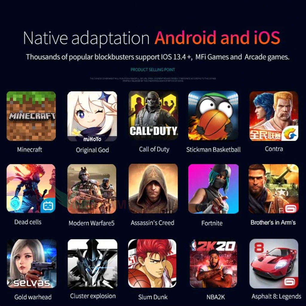 • IOS: Hỗ trợ các game MFi (game được thiết kế có chế độ chơi bằng tay cầm). Một số game nổi bật như: Genshin Impact, Call of Duty Mobile, Apple Arcade, Asphalt 8, Asphalt 9, GTA, Minecraft,…