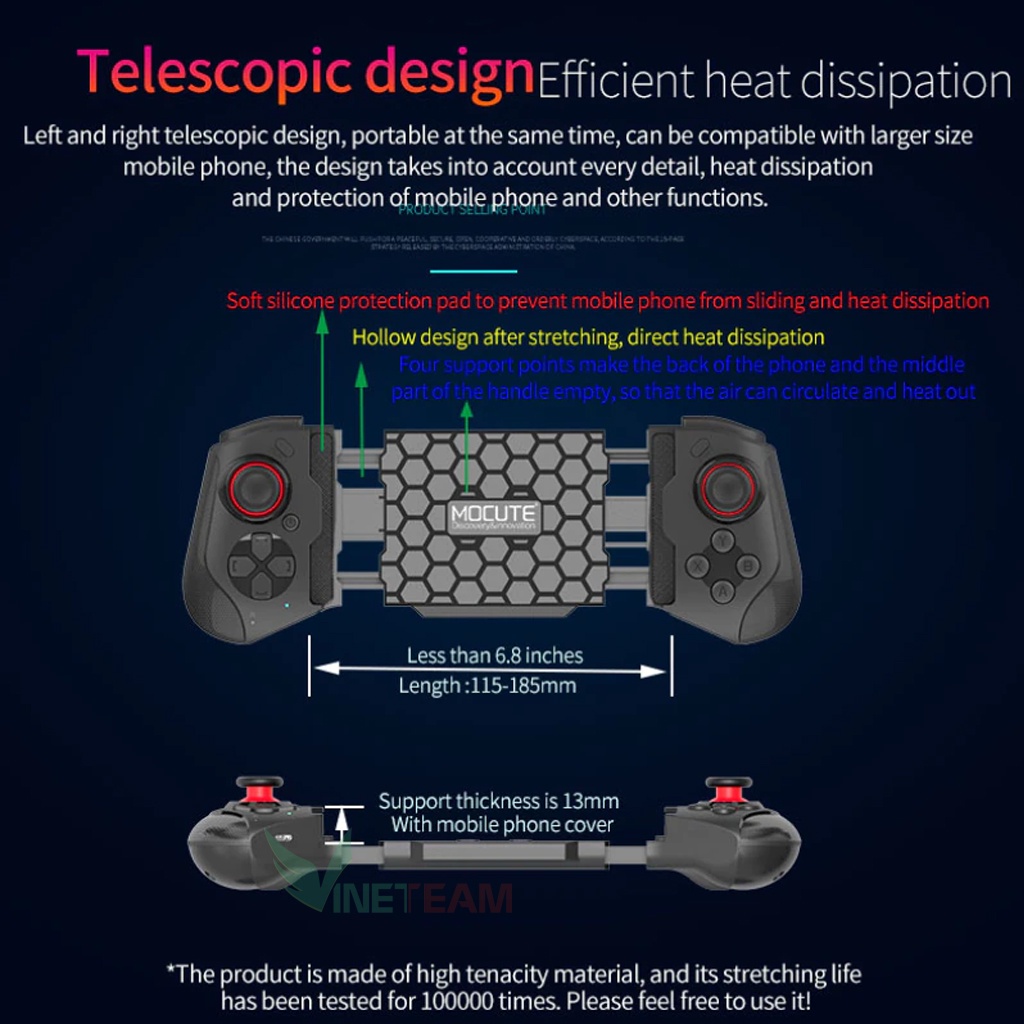 • Với thiết kế đầy đủ các phím tiêu chuẩn như một tay cầm chơi game chuyên nghiệp, MOCUTE 060 mang đến trải nghiệm chơi game console thú vị cho người dùng, có thể giúp bạn tạo cảm giác chơi game một cách thoải mái nhất và tiện lợi nhất trên chính chiếc điện thoại của mình.