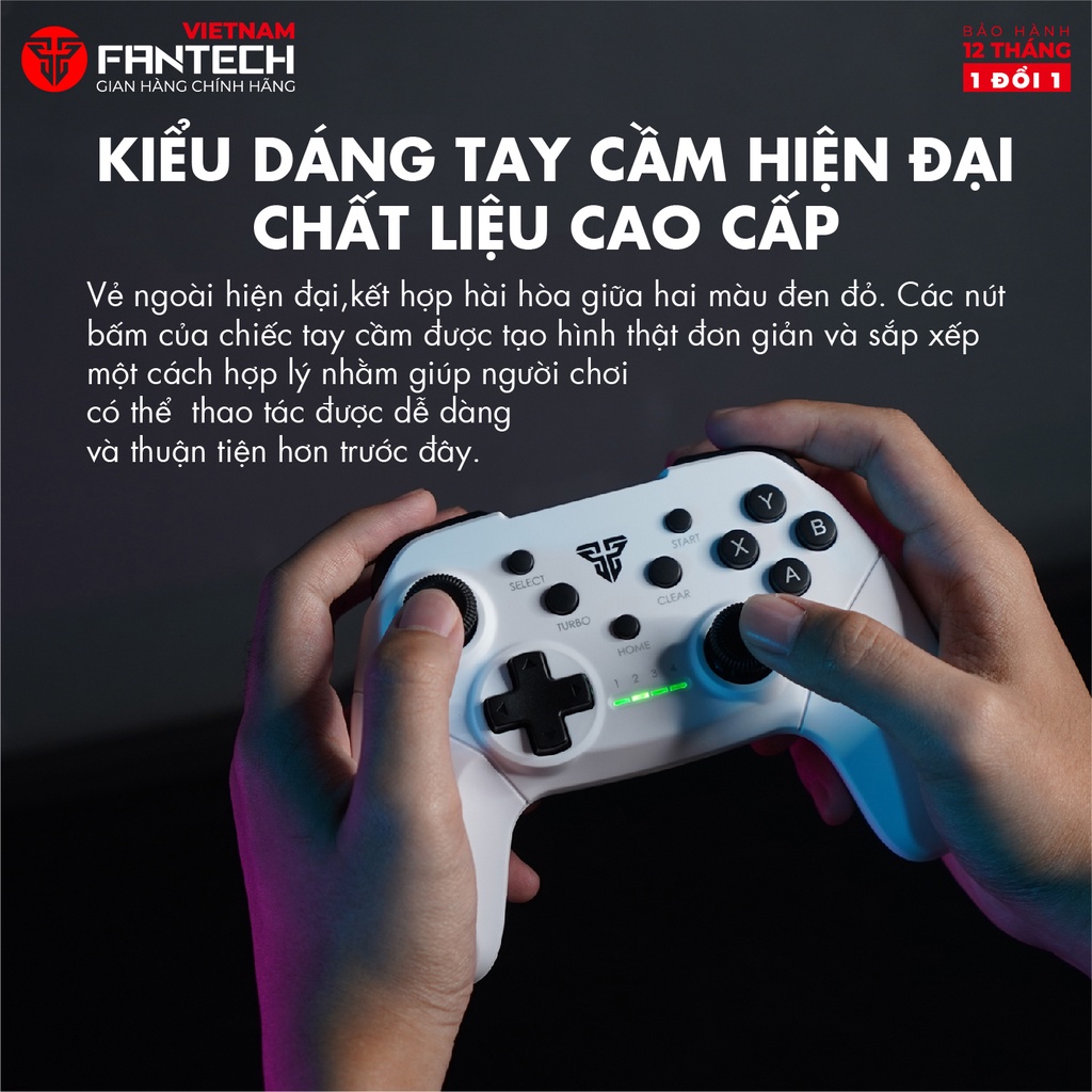- Kiểu dáng tay cầm hiện đại, chất liệu cao cấp: Fantech WGP13 mang vẻ ngoài hiện đại,kết hợp hài hòa giữa hai màu đen đỏ. Các nút bấm của chiếc tay cầm được tạo hình thật đơn giản và sắp xếp một cách hợp lý nhằm giúp người chơi có thể thao tác được dễ dàng và thuận tiện hơn trước đây.