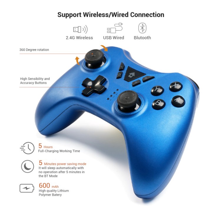 - Bluetooth không dây: Chip Bluetooth để chơi trò chơi không dây. Pin sạc hỗ trợ chơi lâu ..
